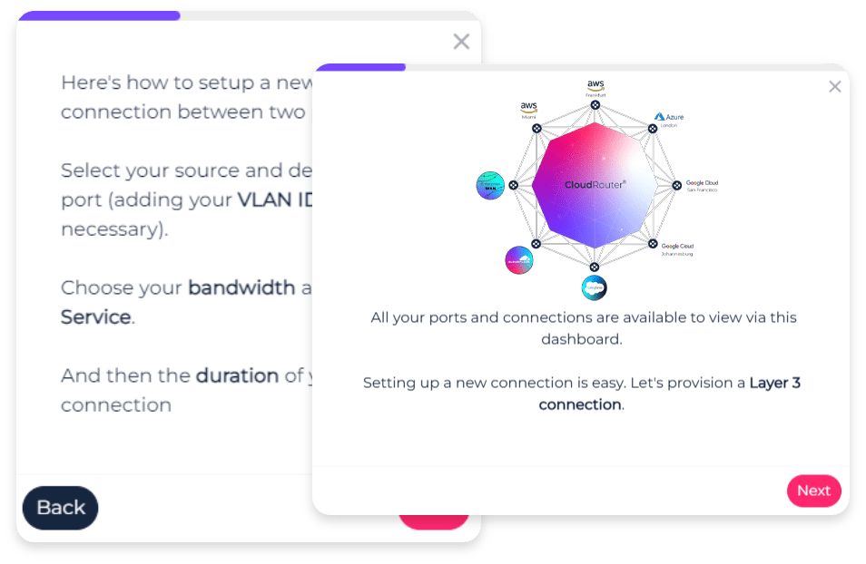 Instantly connect any cloud to any cloud, or any cloud to any location – without the need for dedicated hardware.