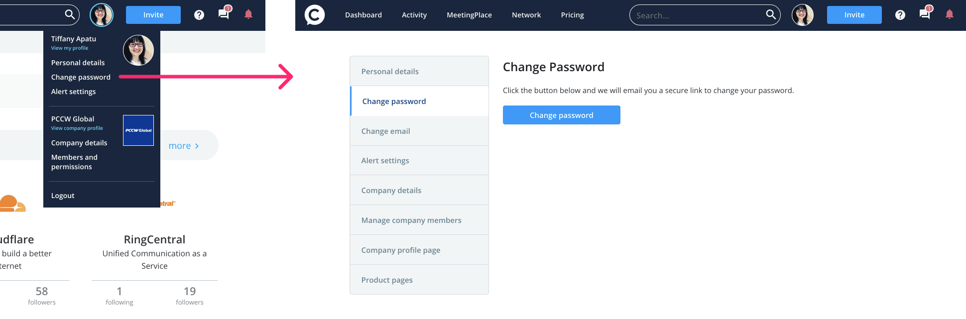 Account Admins and User Admins may change roles of company members by visiting the company’s profile page, selecting Edit Profile, then Company members.