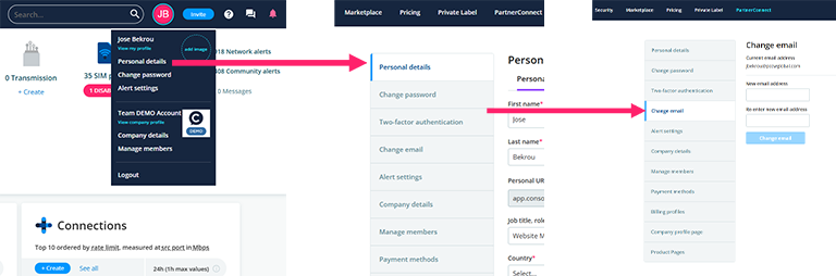 Click Change email in the left menu.