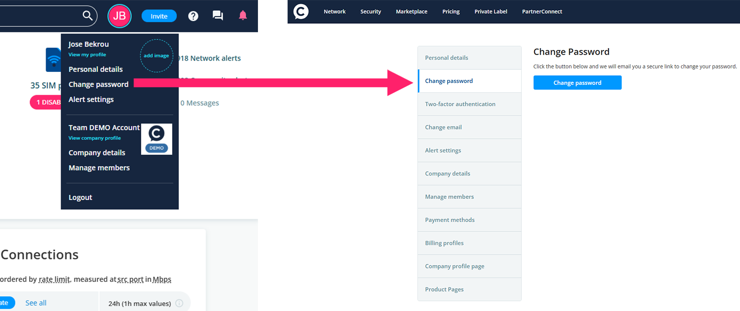 Click Change password and follow the step-by-step instructions.