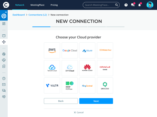 당사의 글로벌 고성능 네트워크를 사용하여 퍼블릭 클라우드 제공업체를 클릭으로 연결하세요.
