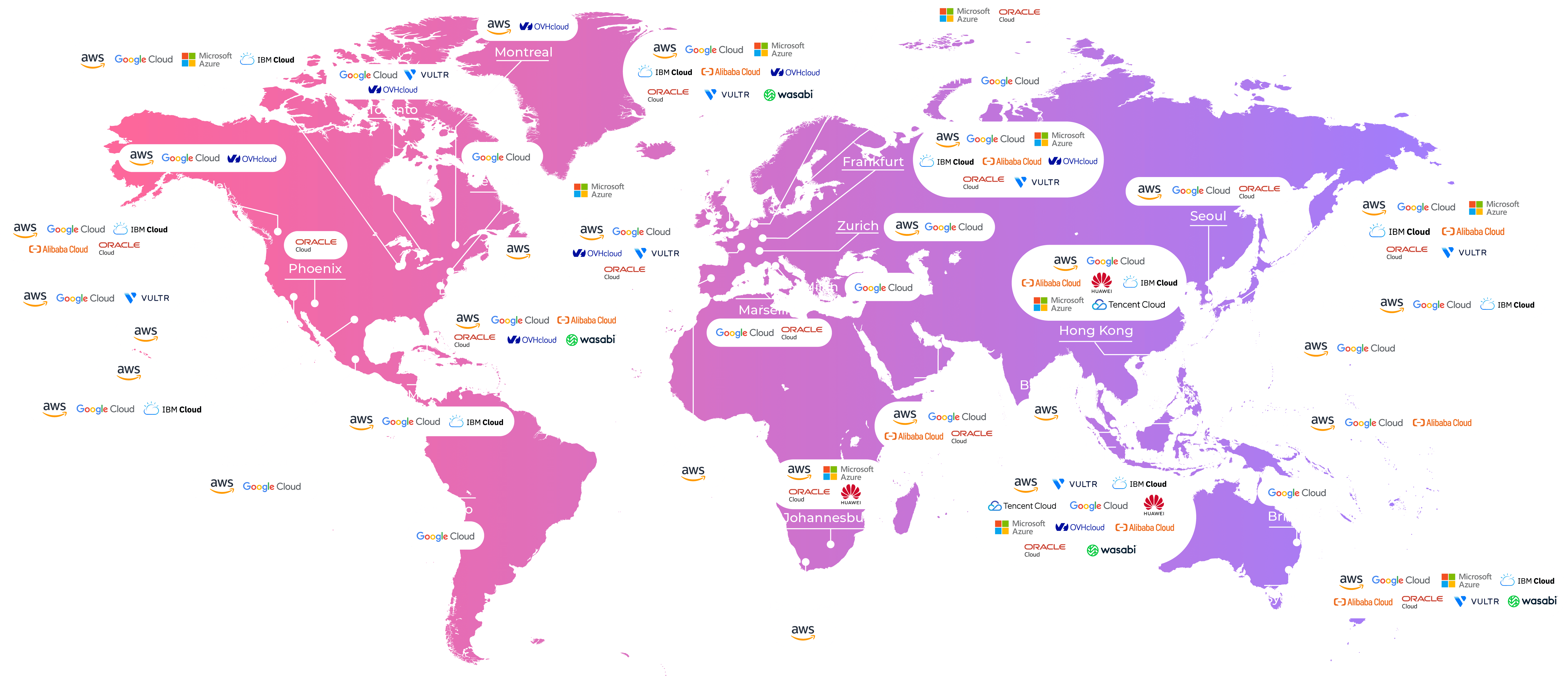 우리의 클라우드 생태계는 항상 성장하고 있습니다. 전 세계 120개 이상의 클라우드 진입 경로를 선택할 수 있는 당사 플랫폼은 비즈니스가 퍼블릭 클라우드와 더 가까워질 수 있도록 도와 드립니다.